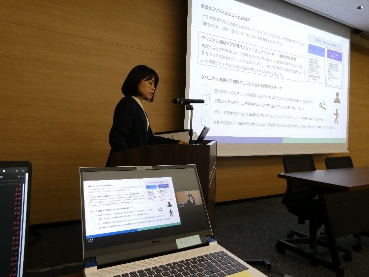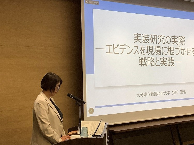 令和8年3月12日(木)に、九州大学病院キャンパス アイン薬局九大南店(2 階 大会議室)会場とするハイブリッド形式で、九州大学看護共創・実装研究拠点シンポジウム~看護実践を目指した戦略と工夫~ が開催されました。特別講演として、招聘講師の大分県立看護科学大学 教授の持田 恵理先生から、『実装研究の実際-エビデンスを現場に根づかせるための戦略と実践-』のタイトルでご講演いただきました。また、各ユニットの発表者をシンポジストとしたシンポジウムが開催されました。参加者は会場と遠隔を合わせ61名でした。